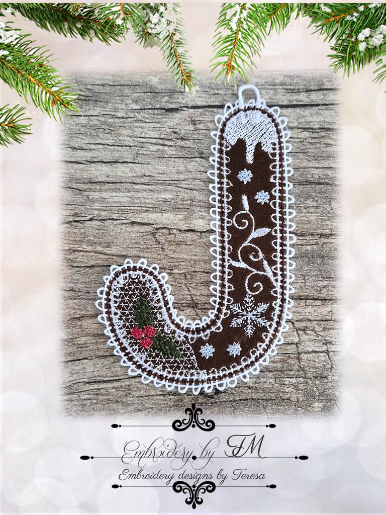 J gingerbread alphabet/5x7 hoop/combination of felt and lace
