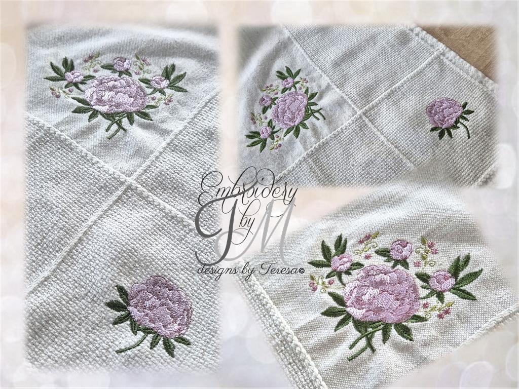 I embroidered this design on linen. On the underside I used a Gunold / Stiffy 1640B / Tear-Away / iron-on stabilizer. And a stabilizer from Gunold / Stiffy 1640 / Tear-Away. After embroidering I removed the stabilizers and the design was ironed. If you use a metallic thread - reduce the thread tension on the embroidery machine and also the embroidery speed.