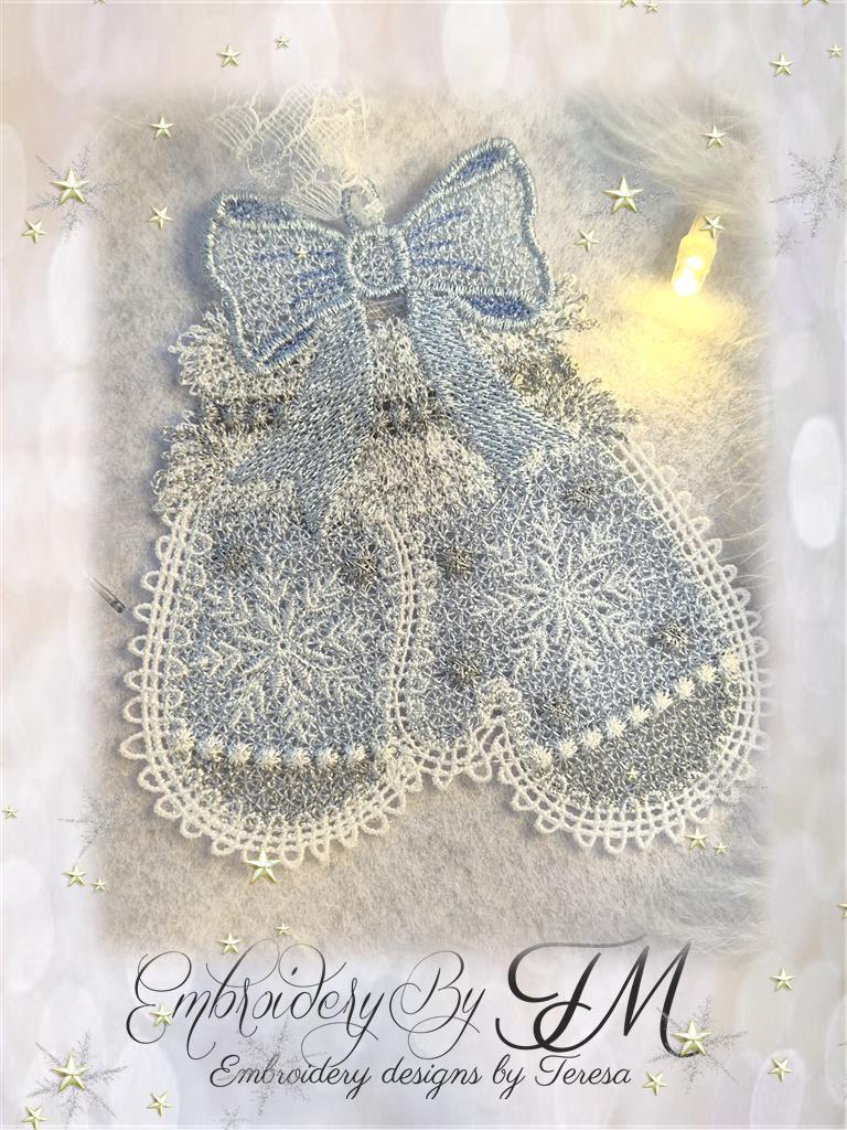 For this design, I used white Sulky Rayon 40 Wt thread and glittery thread from Gunold - Poly Sparkle 30Wt. When using light glittery shades, I use classic white thread for the bobbin. If I use darker glittery threads, I use a similar color for the bobbin – 40 Wt embroidery thread.
