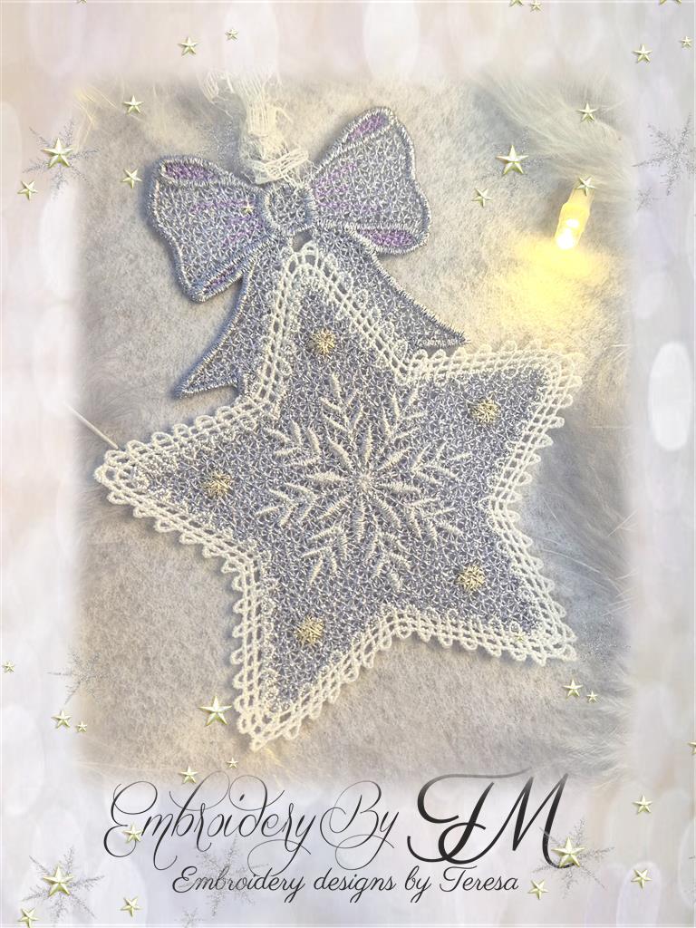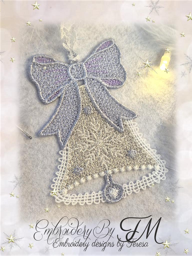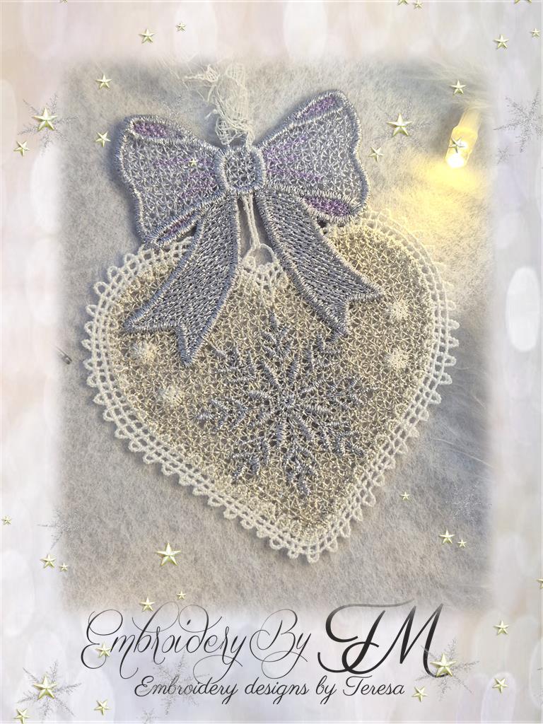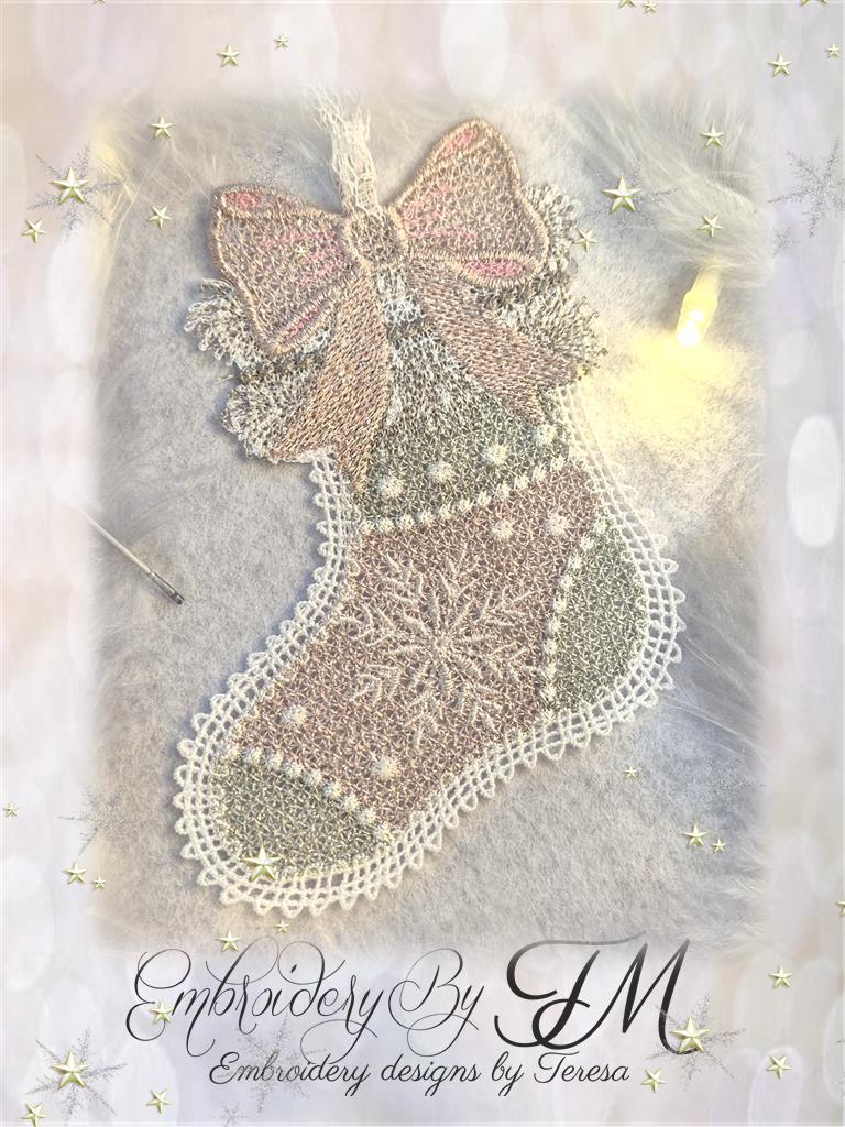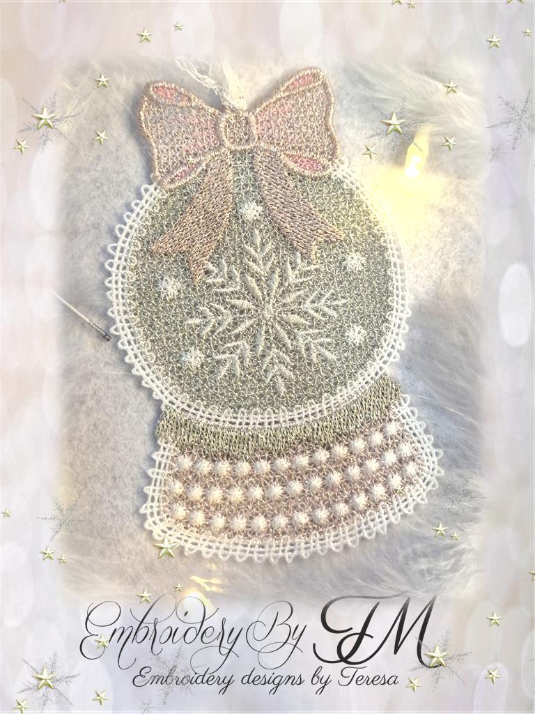 For this design, I used white Sulky Rayon 40 Wt thread and glittery thread from Gunold - Poly Sparkle 30Wt. When using light glittery shades, I use classic white thread for the bobbin. If I use darker glittery threads, I use a similar color for the bobbin – 40 Wt embroidery thread.