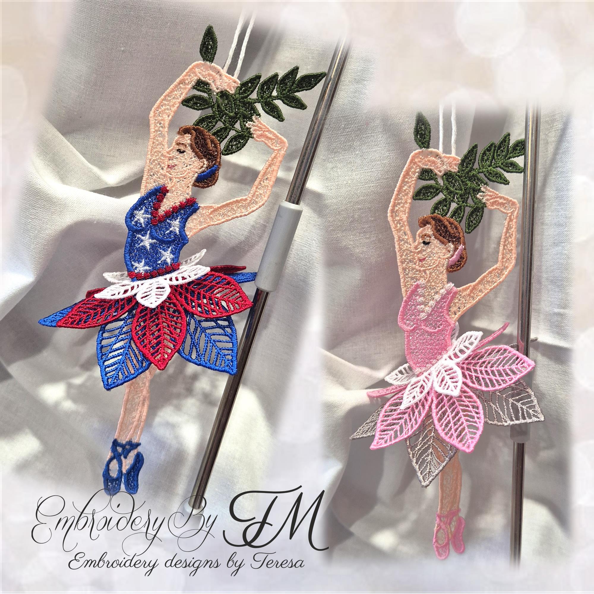 The designs should be embroidered with water soluble stabilizer. We use Vilene water soluble stabilizer-If it’s too thin use two layers. Use a size 11 or 75/11 sharp sewing needle and 40 weight rayon or polyester thread. For my designs, I mostly use embroidery threads from Gunold - SU rayon (sulky rayon), Isacord or Brother embroidery threads.