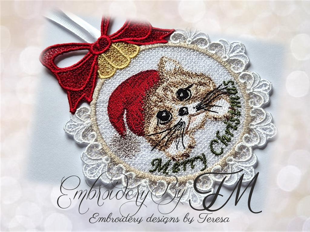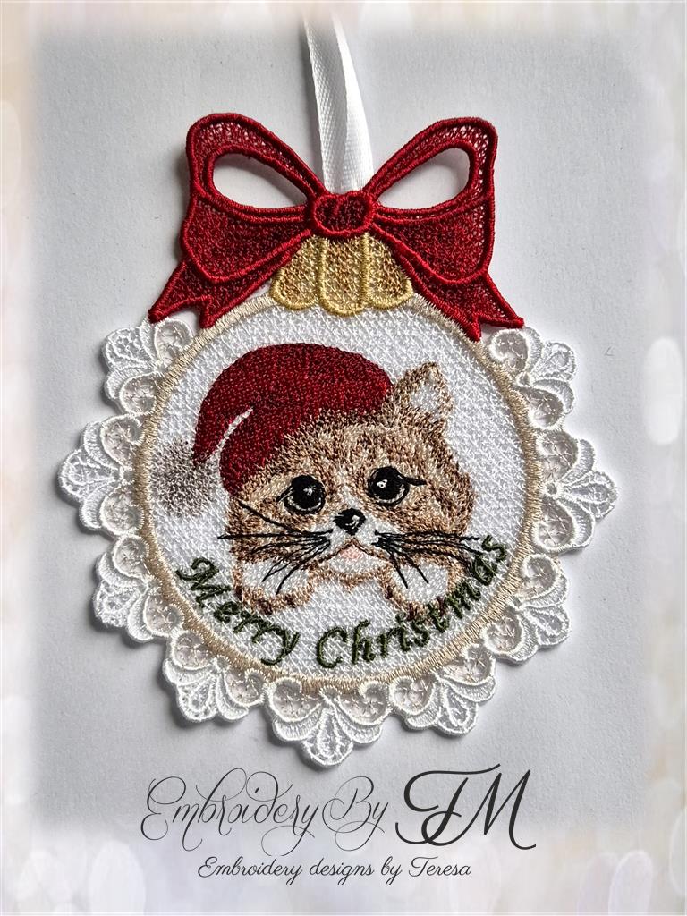 Christmas decoration with a kitty/5x7 hoop/in 4 languages/English, Czech, French, and German